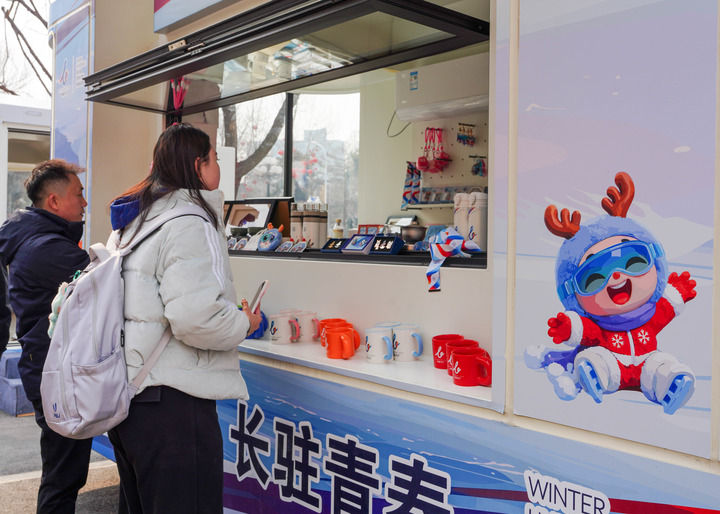 3月21日,一位市民在倒计时牌前展示文创产品。新华社记者 颜麟蕴 摄