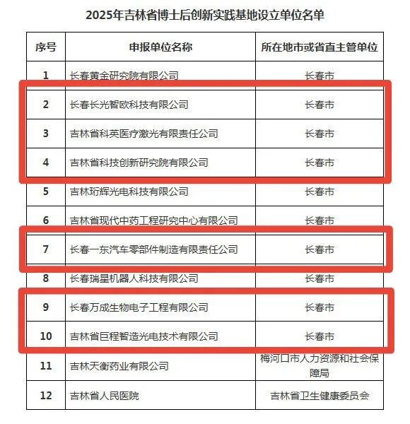 近期,吉林省人力资源和社会保障厅公布2025年度新设立吉林省博士后创新实践基地名单。长春新区6家单位入选,占全省新增总量的一半,为新区博士后人才培养体系注入新的活力,为深化“投资于人”发展理念、推进北湖未来科学城新质生产力人才高地建设提供重要实践载体。
