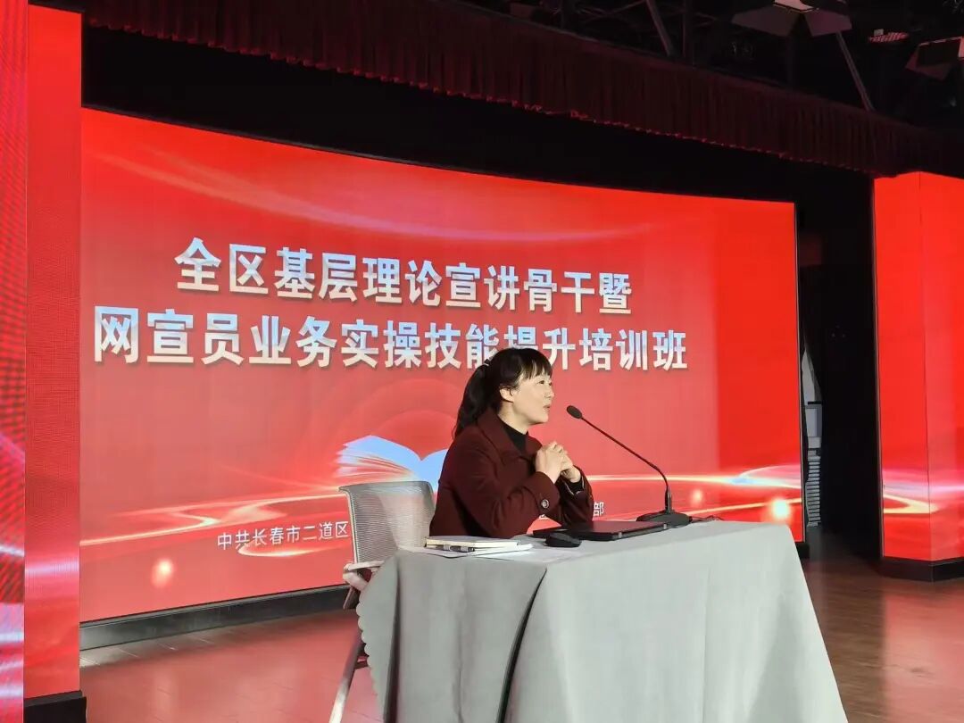 为全面提升基层理论宣讲骨干和网宣员的业务能力与专业素养,进一步夯实基层理论宣讲工作根基,推动党的创新理论深入基层、走进群众,4月1日下午,长春市二道区委宣传部举办全区基层理论宣讲骨干暨网宣员业务实操技能提升培训班。本次培训紧扣理论辅导、技巧提升、实践操作三大维度精准发力,为做好基层宣传思想工作筑牢人才支撑。