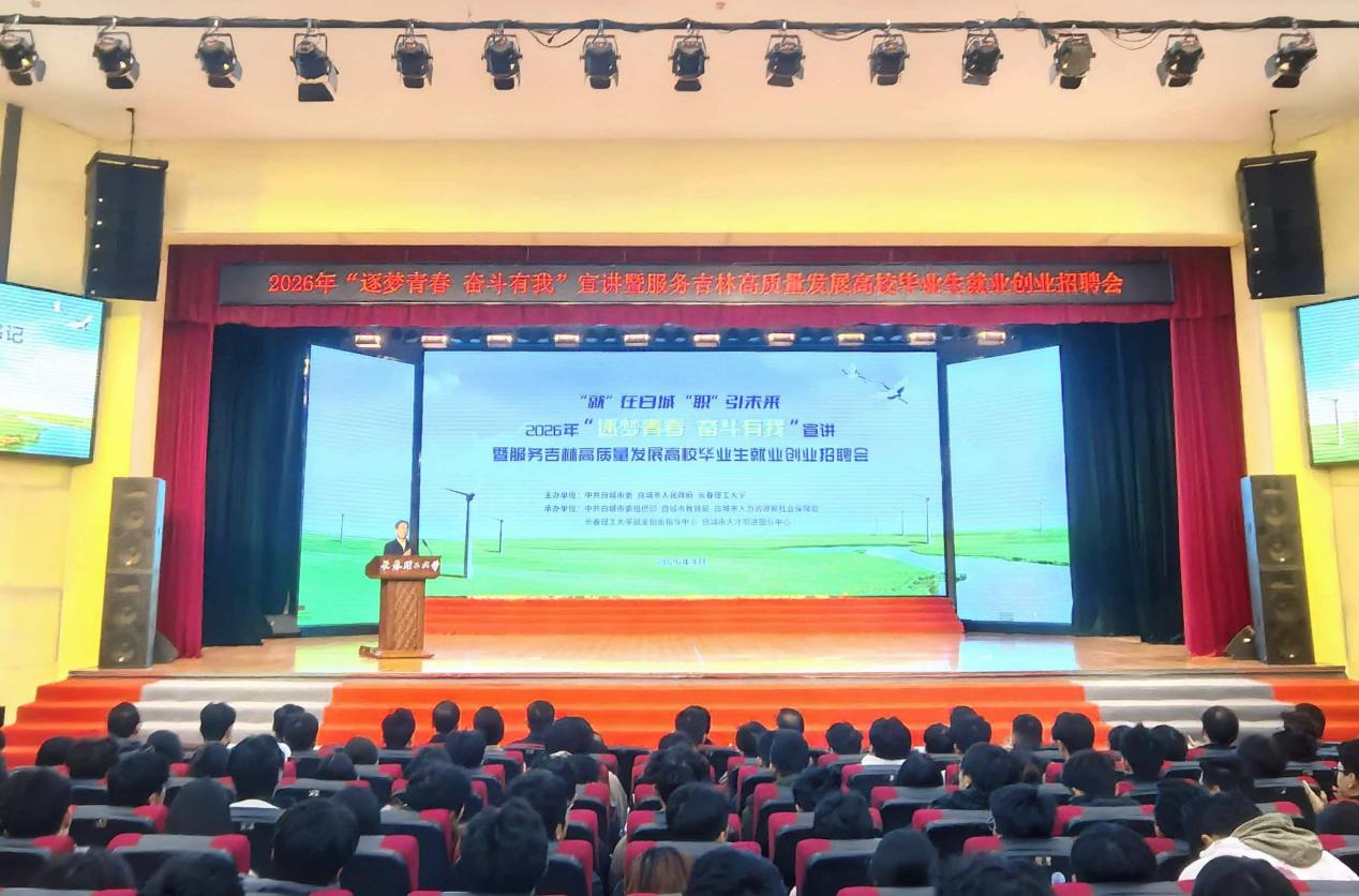 4月11日,“就”在白城、“职”引未来2026年“逐梦青春、奋斗有我”宣讲暨服务吉林高质量发展高校毕业生就业创业招聘会走进长春理工大学。白城市委主要负责同志和企业代表通过诚意满满的宣讲,邀请广大学子赴白城干事创业,在实干奋斗中书写无愧于青春的精彩篇章。